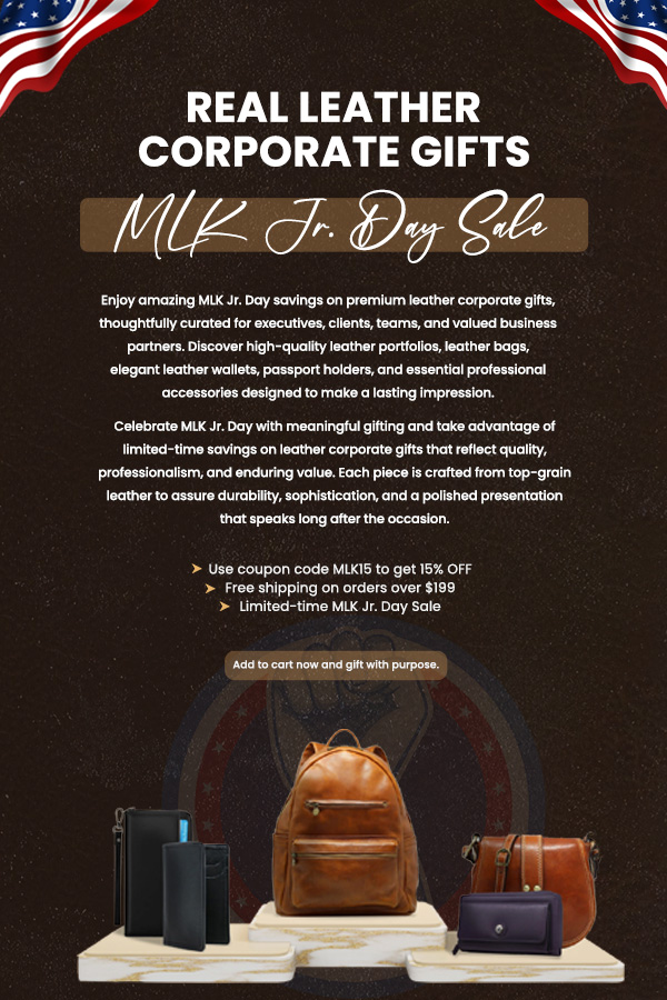 Use the coupon code ‘MLK15’, and claim a FLAT 15% OFF on all our stunning leather jackets and versatile leather corporate gifts.